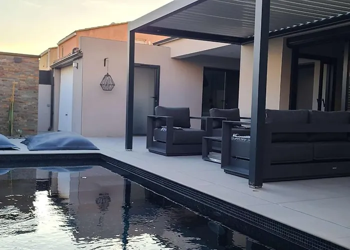 Villa Balagan - El Pueblo 7 - Luxe - 6 Personnes Agde med 1 sovrum, som ligger cirka 25 minuters gångavstånd från Falaises du Cap d'Agde, har utomhusbassäng för gästerna. Villan, som har en terrass, ligger inom 2 km från Luna Park.